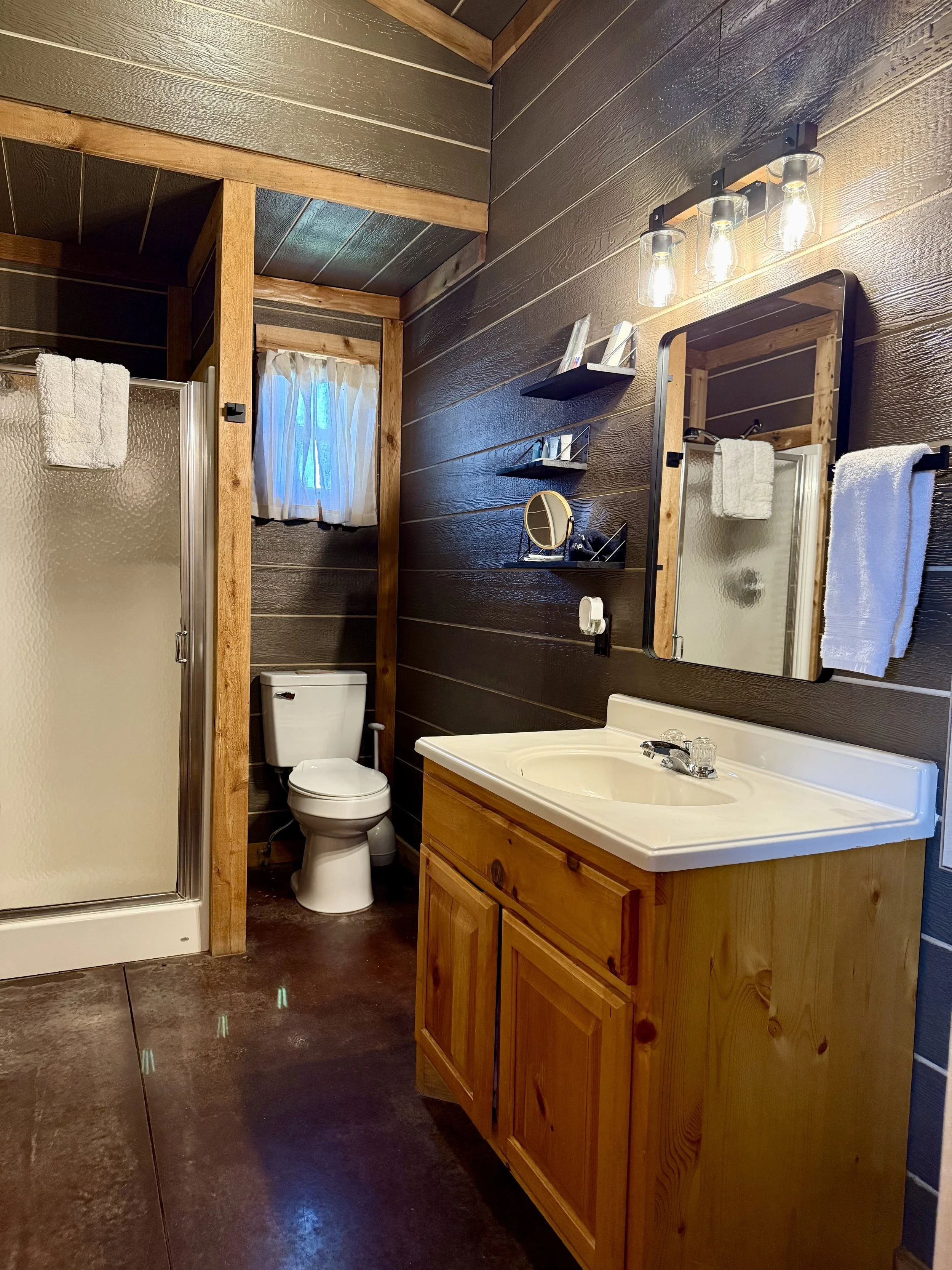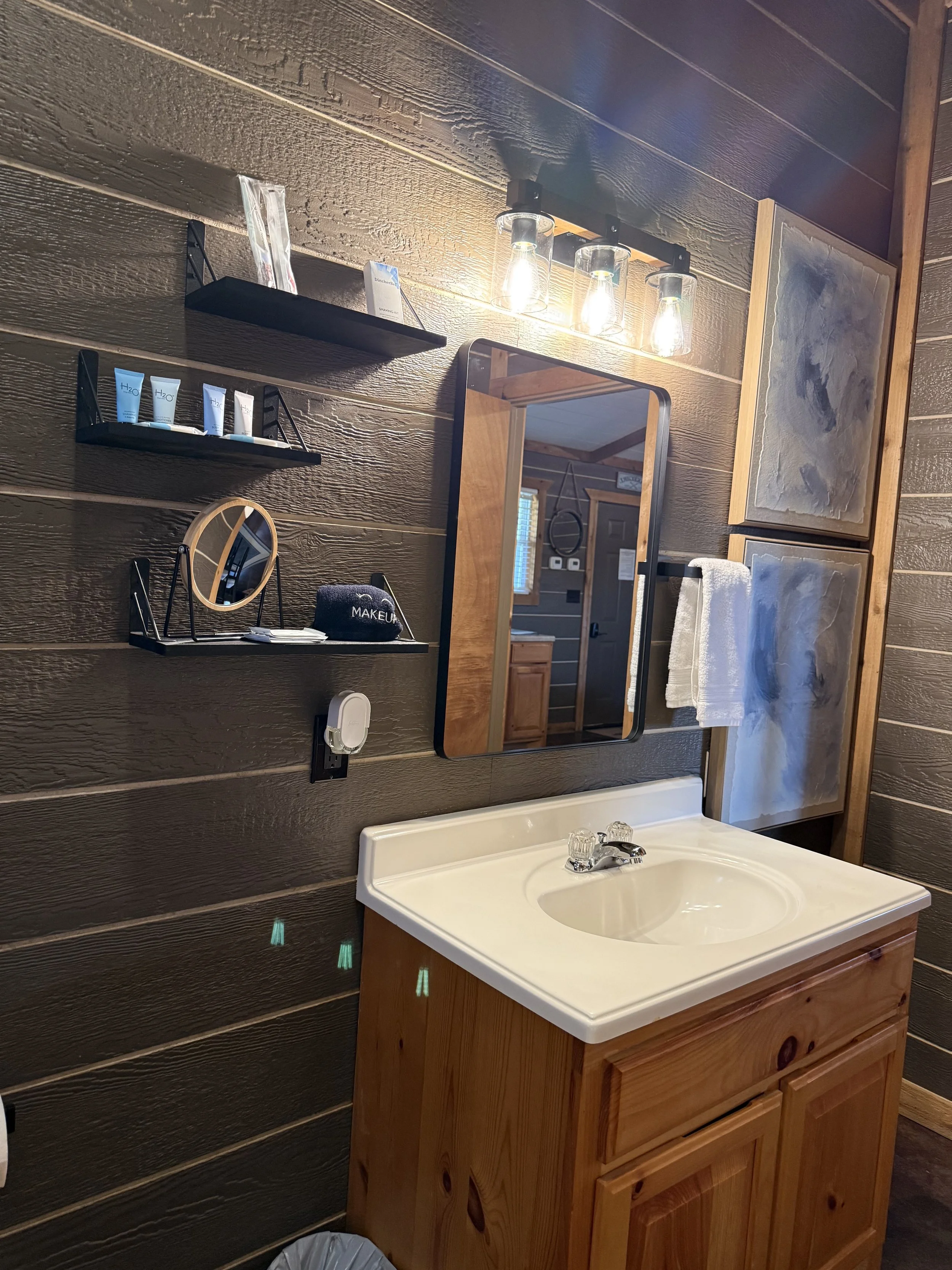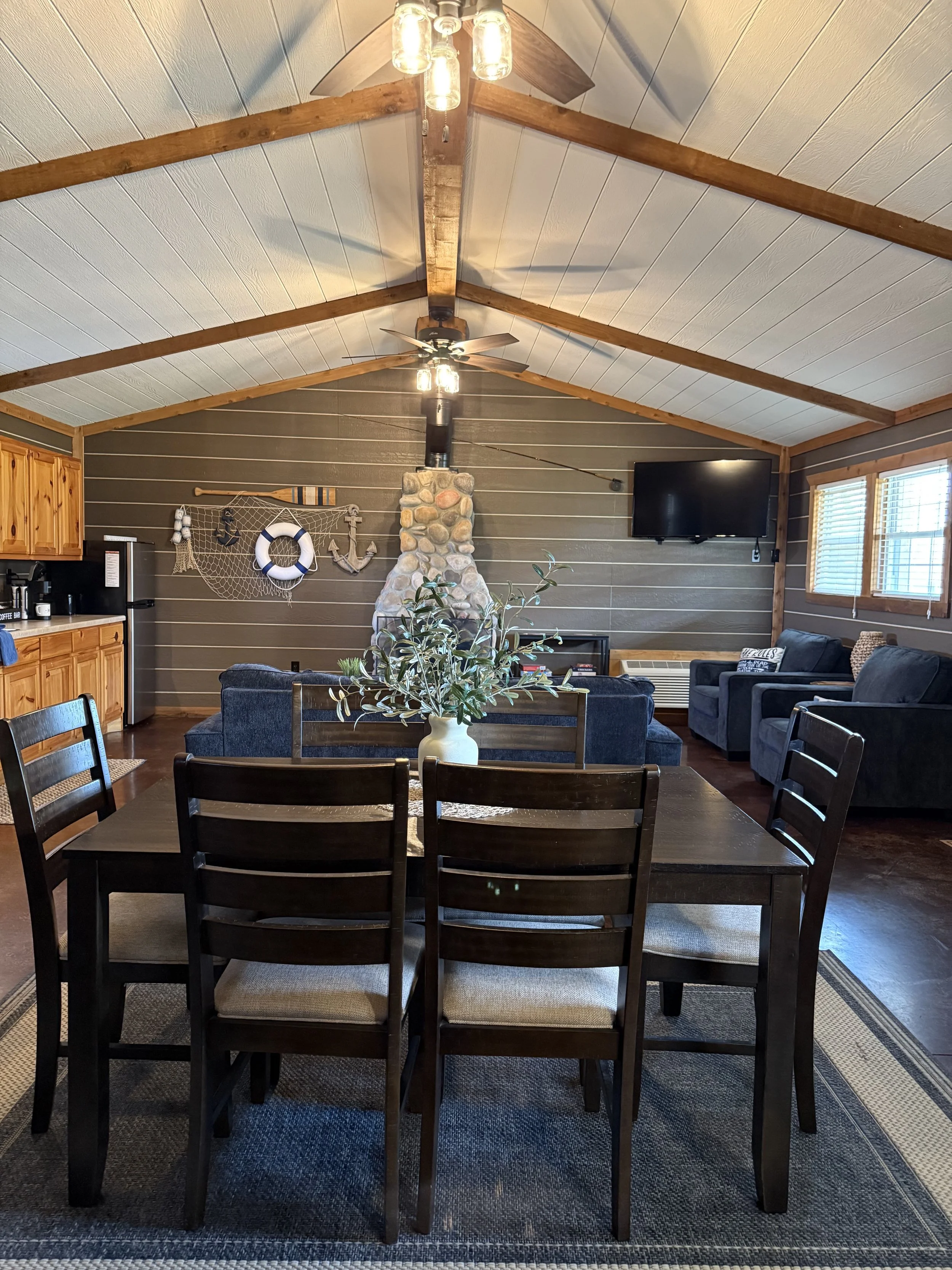 With a new queen bed, full bed, and queen sleeper sofa, it comfortably sleeps up to 6 guests. Enjoy a full kitchen with brand-new appliances, including a fridge, stove, microwave, Keurig with coffee, and all cookware and dishware. The cabin also offers dining and living areas, free Wi-Fi, and cable TV.