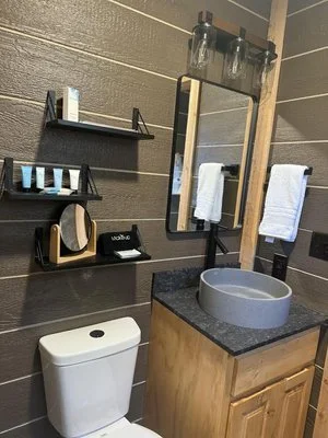 Escape to Portside Paradise, a spacious studio cabin perfect for a peaceful retreat. Soak under the stars in the new 4-person hot tub, then unwind inside with a queen bed, remodeled bathroom, and cozy living/dining area. A new sleeper sofa adds space for extra guests.